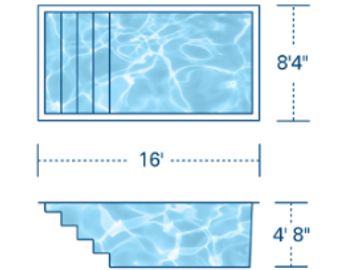 A versatile flat-bottom pool for fun or fitness, with dual entry stairs, a front bench, and optional jets.