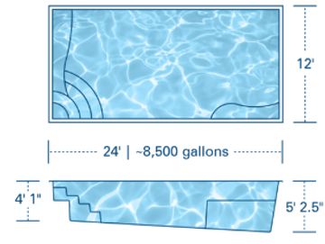 Available in 12' x 24' and includes sun ledge and deep end benches